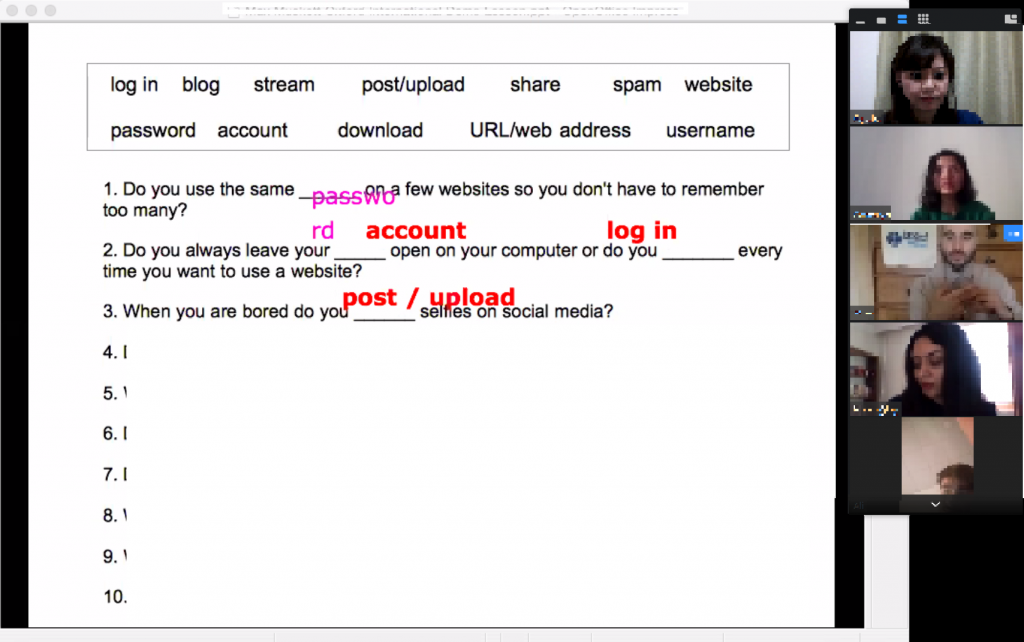 この日は国際色豊かな学生たちと共に、ブライトンにいるネイティブ講師による授業。
